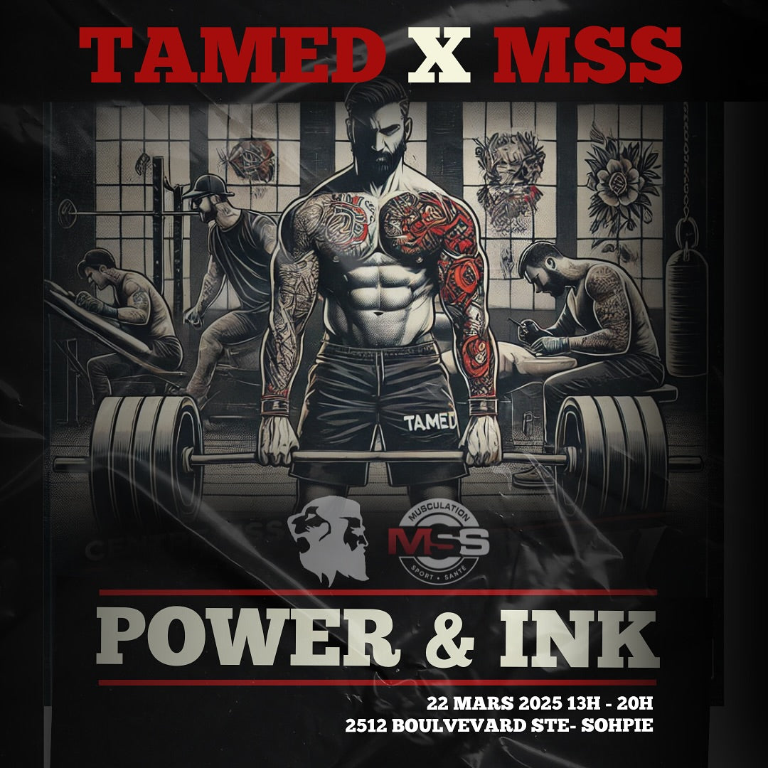 It’s a collaboration event between TAMED and MSS (Musculation, Sport & Santé). The theme focuses on strength (powerlifting) and tattoos (ink).
